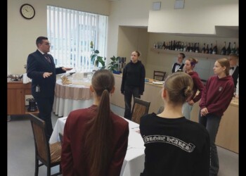 🎓✨ Balandžio 16 d. Klaipėdos Vytauto Didžiojo gimnazijos IIc klasės gimnazistai lankėsi Klaipėdos turizmo mokykloje vykusiose Atvirų durų dienose!